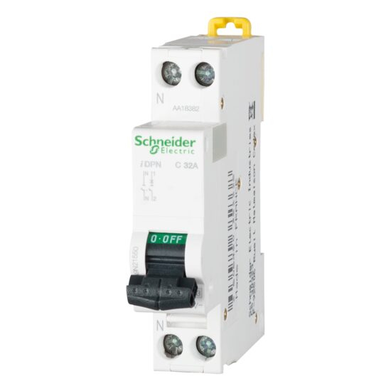 Gama de protectii marca Schneider este atent selectata si produsa pentru a oferi solutii inovative si fiabile pentru problemele dumneavoastra. Orice dificultate ati putea intalni, noi va stam la dispozitie cu produse variate si potrivite atat financiar, cat si calitativ. In acest sens, prezentam un model de intrerupator automat de tip 1P+N ce functioneaza cu un curent nominal de 32A, la o frecventa nominala de 50-60Hz. De asemenea, capacitatea de rupere nominala are valoarea de 4.5kA pentru o curba caracteristica de tip C.